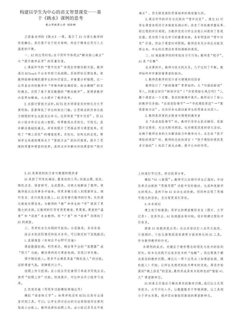 本次活动聚焦课堂实践,首先在线观摩了遂宁市洋渡实验学校王丽春老师执教的精彩课例《跳水》。王老师的课堂生动展现了AI技术作为“教学智慧伙伴”的强大支撑力。课前,她利用AI学情分析系统精准把脉,快速锁定学生在文本理解与逻辑推理上的潜在难点,为实现“以学定教”奠定了科学基础。课中,AI工具的动态介入更是点睛之笔:无论是通过智能推送实现的分层任务,还是利用数据可视化对小组讨论成果进行的即时分析与呈现,都显著提升了教学互动质量与节奏效率。这节课堂不仅是一堂生动的语文课,更是一个可借鉴、可复制的“AI+语文”教学范式,为一线教师从“经验驱动”走向“数据与智能双驱动”的教学转型提供了宝贵的实践蓝图。