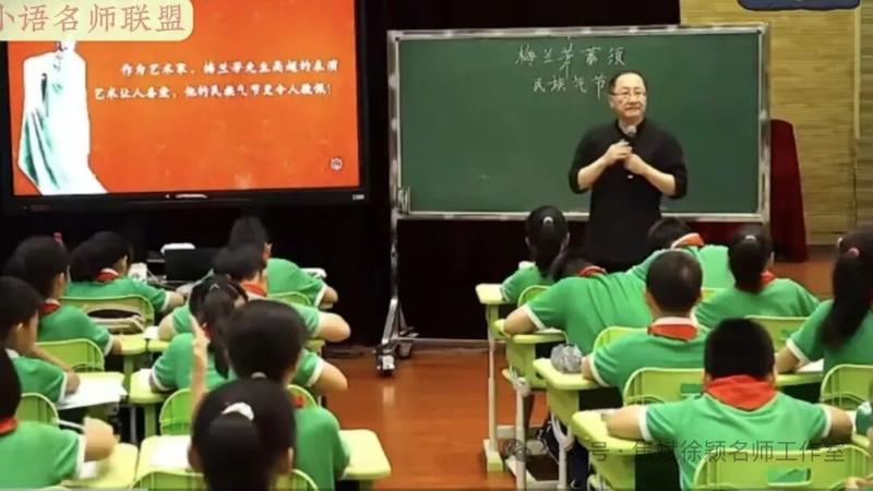 王崧舟老师的《梅兰芳蓄须》一课,以精巧设计与深厚底蕴,为老师们呈现了一堂兼具温度与深度的叙事性作品教学范例。课堂伊始,王老师通过“名人信息卡”帮学生初识梅兰芳,再播放《贵妃醉酒》经典选段,以直观视听体验唤醒学生对京剧大师的认知,快速搭建情感联结。