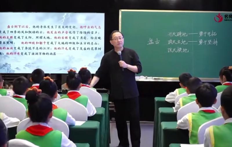 王崧舟老师以“嫦娥工程”“夸父一号”“女娲补天”等现代科技命名导入,巧妙激活学生对神话原型的文化记忆。课堂尾声更以“华为盘古大模型”回应开篇,形成“提问—探究—回应”的完整情境闭环,使学生直观感受到神话精神在当代科技中的延续与再生。