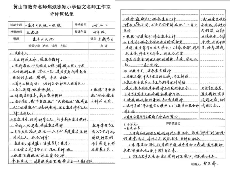 近日,黄山市焦斌徐颖名师工作室第三小组全体成员怀着饱满的学习热情云端相聚,共同观摩特级教师王崧舟执教的四年级上册《盘古开天地》精彩课例。课后,成员们围绕“如何架设科技与传统文化桥梁”“如何紧扣语文精髓实现跨学科育人”两大核心议题,在小组导师的精准引领下展开深度研讨,于思维碰撞中探寻教学新思路,尽显工作室成员积极进取的学习风貌,也充分彰显了“导师制+”教研模式的强大赋能作用。