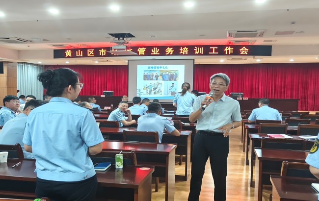 2025年10月13日上午,黄山区市场监督管理局会议室座无虚席,黄山市王锋名师工作室领衔人、黄山旅游管理学校督学、正高级讲师王锋,受邀开展《重德明理 亮德展技——争当人民满意的好监督员》主题礼仪培训,全局干部职工全员参与学习,以礼仪“软实力”夯实监管服务“硬根基” 。