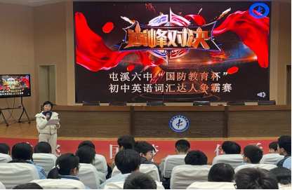 为激发学生英语学习热情,夯实词汇基础,提升语言应用能力,近日,屯溪六中联合熊薇名师工作室,面向九年级全体学生举办“国防教育杯”英语词汇达人争霸赛。本次比赛以“以赛促学,以学促用”为宗旨,为毕业班学子搭建了展示英语素养的竞技平台,赛场之上,同学们沉着应战、奋勇争先,展现出扎实的学识与良好的风貌。