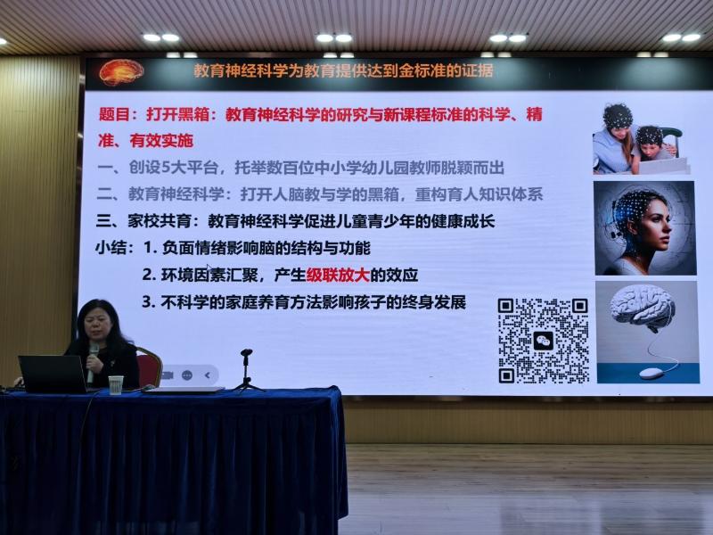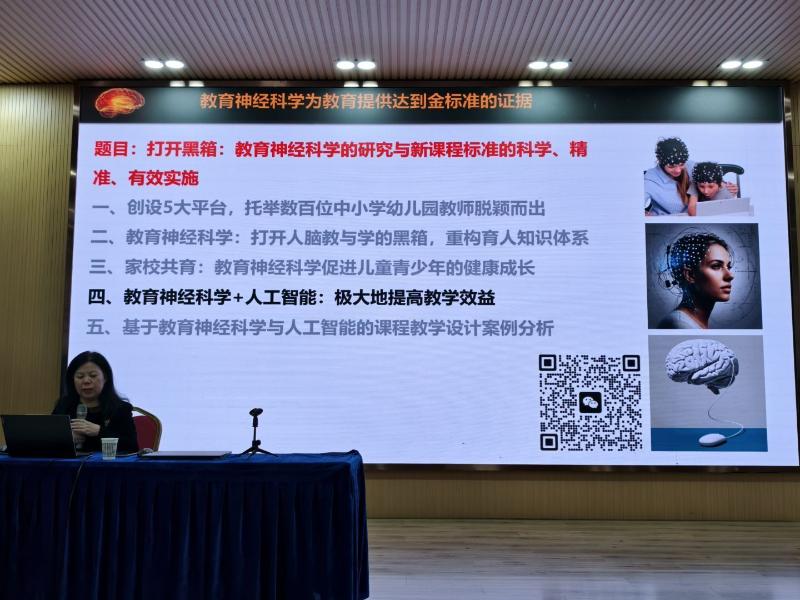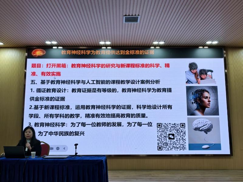 周教授从四大方面进行系统阐述:一是教育神经科学打开人脑教育学的黑箱,重构育人知识体系;二是家校共育中,教育神经科学助力儿童青少年健康成长;三是教育神经科学与人工智能结合,极大提高教学效益;四是基于教育神经科学与人工智能的课程教学设计案例分析。她强调,教育神经科学将教育学、心理学和神经科学相结合,采用循证教育策略,以科学、精准、有效的方法落实国家新课程标准,促进学生学习,提升教育质量。