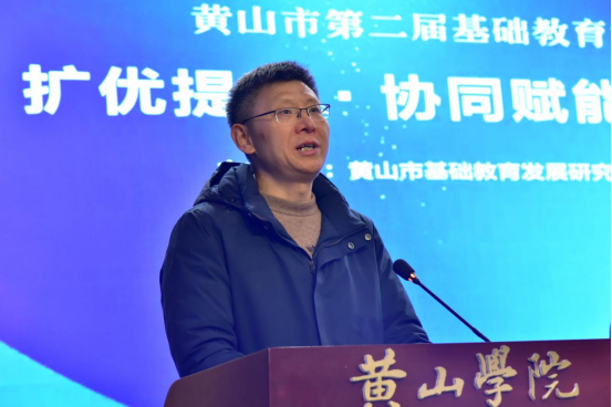 黄山学院党委委员、副校长张小明教授致欢迎辞,他指出,黄山学院深耕地方教育、深化校地协同育人,持续为区域基础教育输送优质师资与智力支持,本次研讨会搭建了高校与基础教育深度对接的桥梁,助力教育资源共享、成果共创、发展共赢。黄山市委教育工委委员、市教育局副局长谢其正在致辞中强调,全市教育系统要锚定教育强国建设目标,以扩优提质为主线,强化教研创新与成果转化,持续推动基础教育优质均衡发展,希望以本次会议为契机,凝聚多方力量,打造区域教育协同发展新样板。