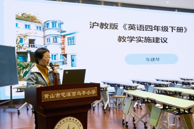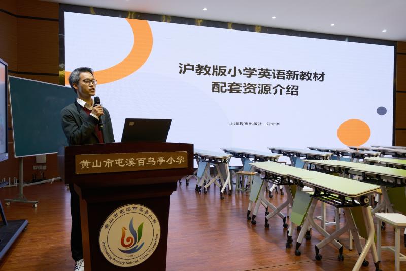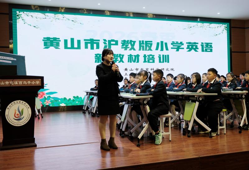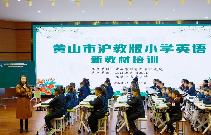为深入落实《义务教育英语课程标准(2022年版2025年修订)》要求,准确把握沪教版小学英语新教材的编写理念与教学策略,3月27日上午,由市教科院组织、上海教育出版社协办、屯溪百鸟亭小学承办的2026年春季黄山市沪教版小学英语新教材专题培训顺利举行。此次培训覆盖市直及屯溪区沪教版教材使用学校,相关教师齐聚一堂,通过课例展示、专家讲座、资源分享等形式,共研教材教法,共促专业成长。